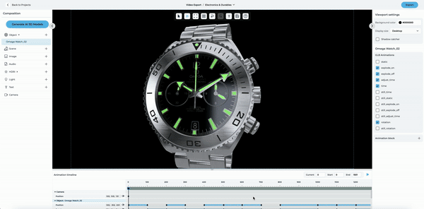 With this option, you can export the project as a video, capturing any animations or movements within the scene. The video can be exported in MP4 format.
